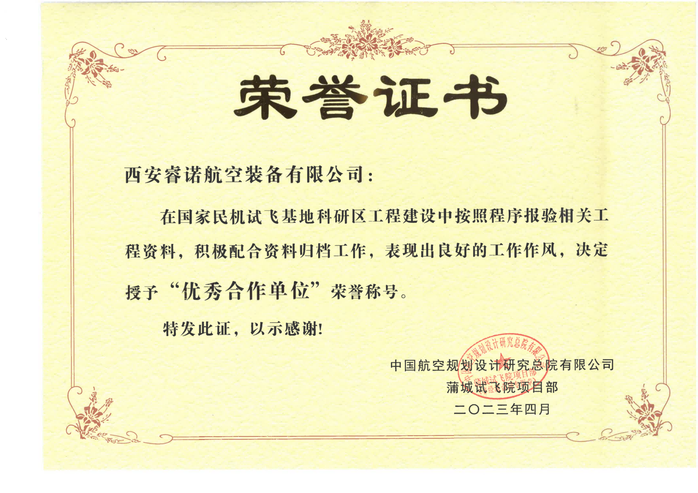 該榮譽(yù)的獲得,體現了中國航空規劃設計研究總院有限公司蒲城試飛院項目部對我司在項目管理、人員技術(shù)水平等方面的認可,同時(shí)也為雙方進(jìn)一步深化合作奠定了良好的基礎。