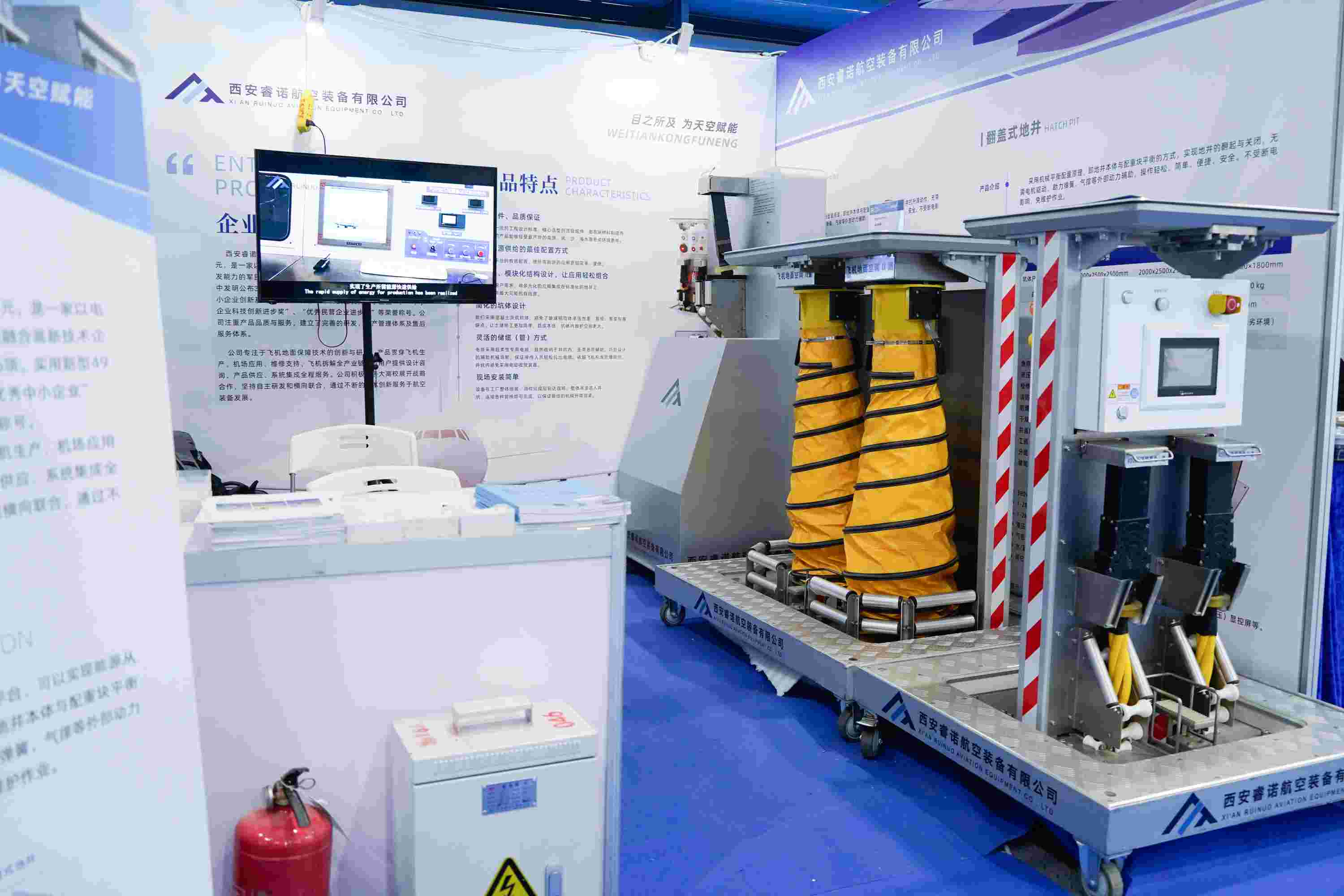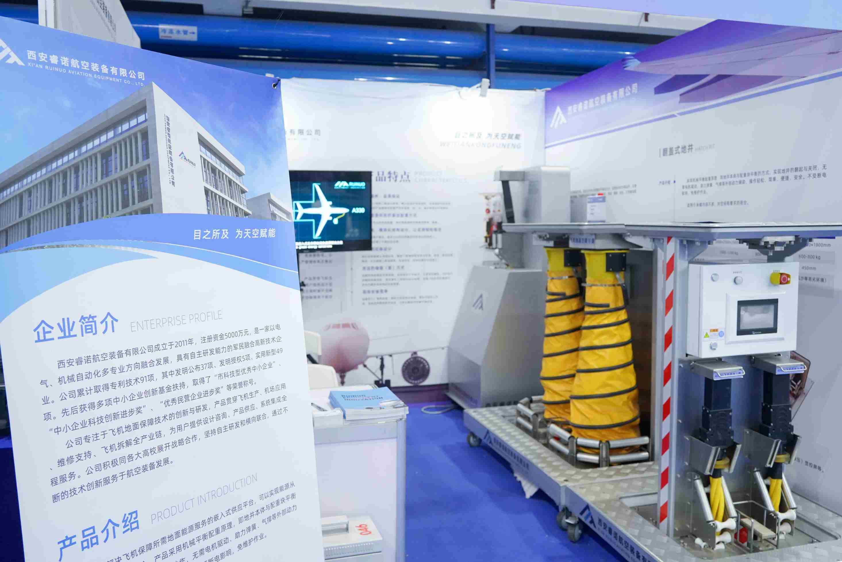 本次展會(huì ),西安睿諾攜飛機地面保障設備解決方案,包括升降式地井、電纜夾送等多款創(chuàng )新產(chǎn)品參展。