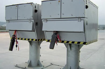 本產(chǎn)品有效解決了機坪上飛機地面電源與飛機之間的電纜連接問(wèn)題,有效保護了飛機供電電纜,避免了磨損,減輕了作業(yè)人員的體力支出。將本產(chǎn)品安裝在飛機停機位置附近電源側,通過(guò)線(xiàn)纜折疊桿將400Hz、28.5V飛機供電電纜延伸到飛機下方。折疊桿延伸長(cháng)度可選,最大延伸長(cháng)度可達24米。
